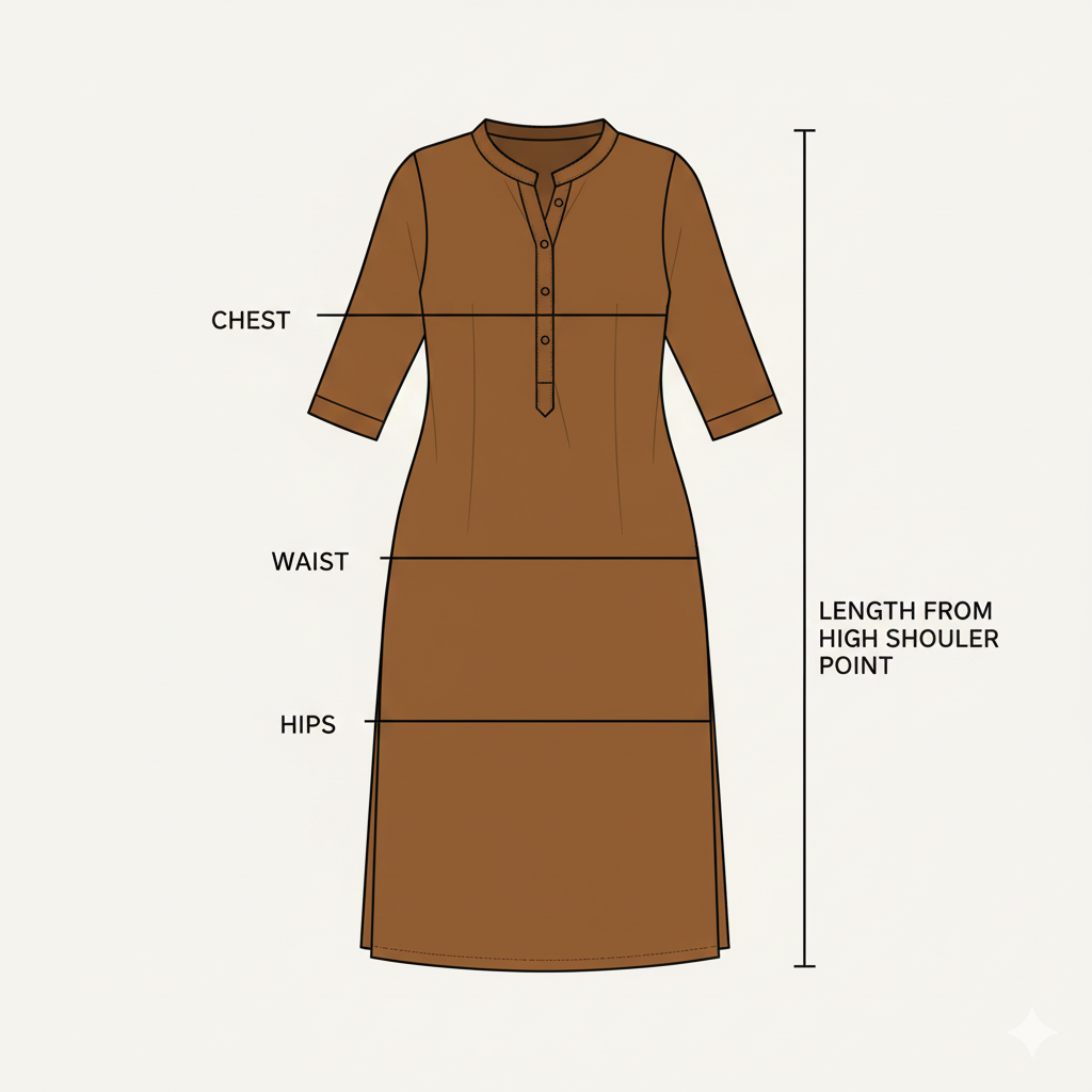 See the video tutorial above. You only need an Indian or Indo-Western dress that fits you well, and a measuring tape or ruler. Follow the simple steps below.